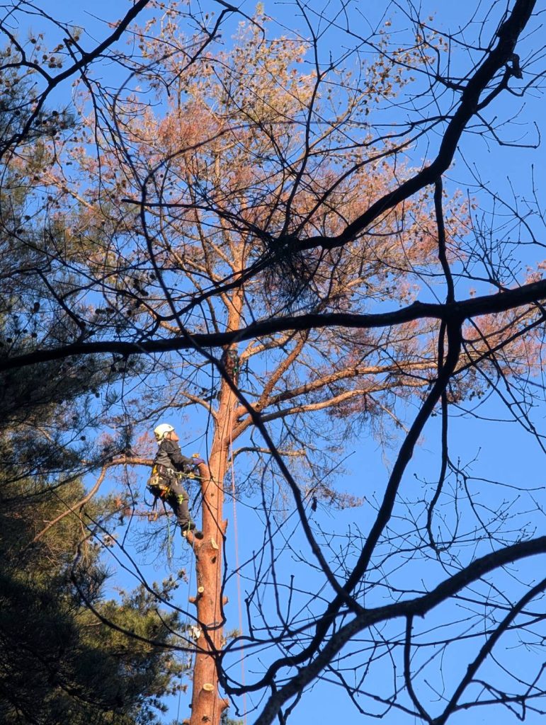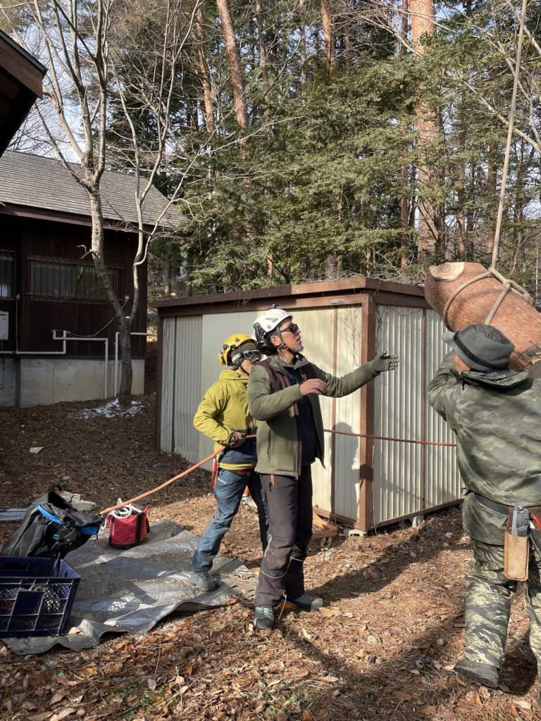 でも、仲間との呼吸、1m程度に切ますがそれでも100kg程度有るでしょう。一本ずつ、慎重に枝を降ろしていく。 最後の一節を切り終え、地面に足がついた時の安堵感は、何年この仕事をしても変わりません。